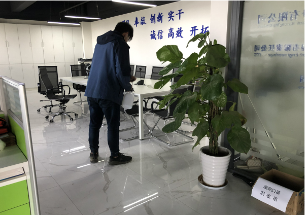 臨空分公司組織人員在復(fù)工前一天對(duì)辦公室、宿舍、生產(chǎn)車(chē)輛等進(jìn)行了徹底消殺,并為員工準(zhǔn)備了口罩、酒精、消毒水、防護(hù)服等防疫物品。為了保證員工的個(gè)人生命安全,做到每人每日測(cè)量體溫并做好記錄,嚴(yán)格按照要求佩戴口罩;免洗消毒液隨身攜帶隨時(shí)隨地消毒;訂購(gòu)分餐盒飯,一人一桌單獨(dú)用餐;按值班表每日專人對(duì)工作區(qū)域進(jìn)行消毒。