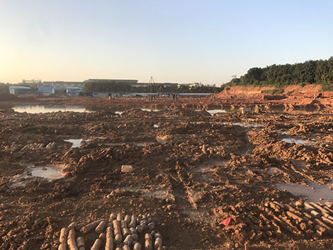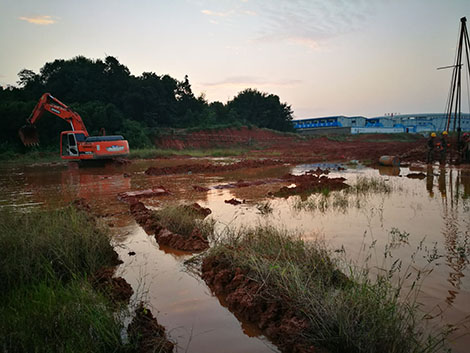 自設(shè)備進(jìn)場(chǎng),9月下旬至10月上旬,咸寧市又遭遇了連續(xù)降雨天氣,場(chǎng)地濕滑,地表滿(mǎn)布淤泥,施工條件極差,進(jìn)駐現(xiàn)場(chǎng)后,現(xiàn)場(chǎng)負(fù)責(zé)人及時(shí)調(diào)配三組水泵、挖機(jī)等場(chǎng)地整理設(shè)備,對(duì)現(xiàn)場(chǎng)的泥水,淤泥進(jìn)行全面的清理整平工作,以保證鉆探施工正常作業(yè)。但連續(xù)陰雨天氣的影響,導(dǎo)致場(chǎng)地不斷積存大量泥水,而武漢市勘察設(shè)計(jì)有限公司承擔(dān)的咸寧高新區(qū)(甘魯片區(qū))棚改項(xiàng)目施工勘察項(xiàng)目的外業(yè)鉆探還在堅(jiān)持作業(yè)。項(xiàng)目現(xiàn)場(chǎng)負(fù)責(zé)人同鉆機(jī)班組一道攻堅(jiān)克難、櫛風(fēng)沐雨,在泥水中作業(yè),雨鞋、衣服滿(mǎn)是泥漬。